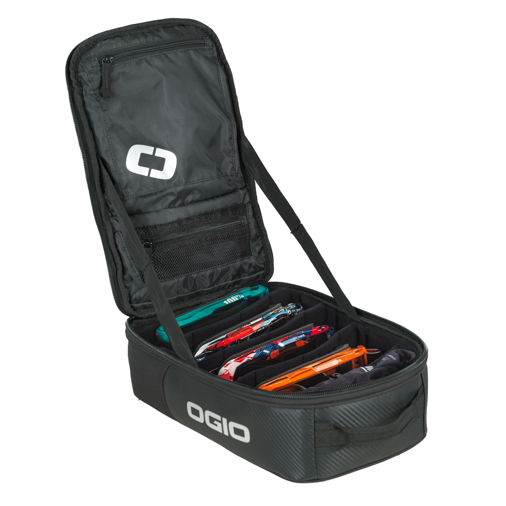 The OGIO MX Goggle Box is a great way to carry your goggles with you where ever you go. The fleece-lined interior is divided, so you can bring up to 5 pairs of goggles, and the lens pocket lets you switch out depending on the weather conditions.
