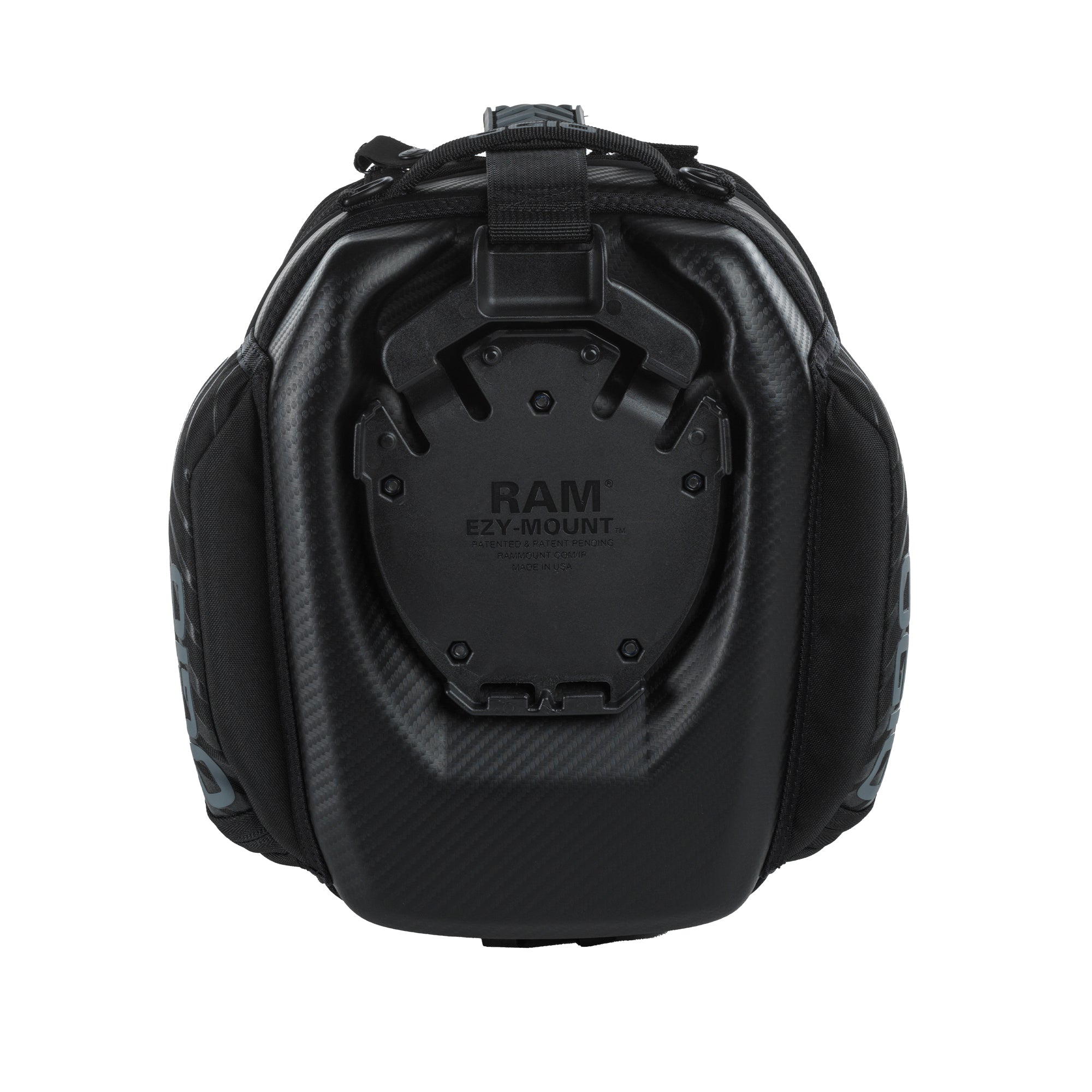 - Both top and base feature carbon fiber weave graphics