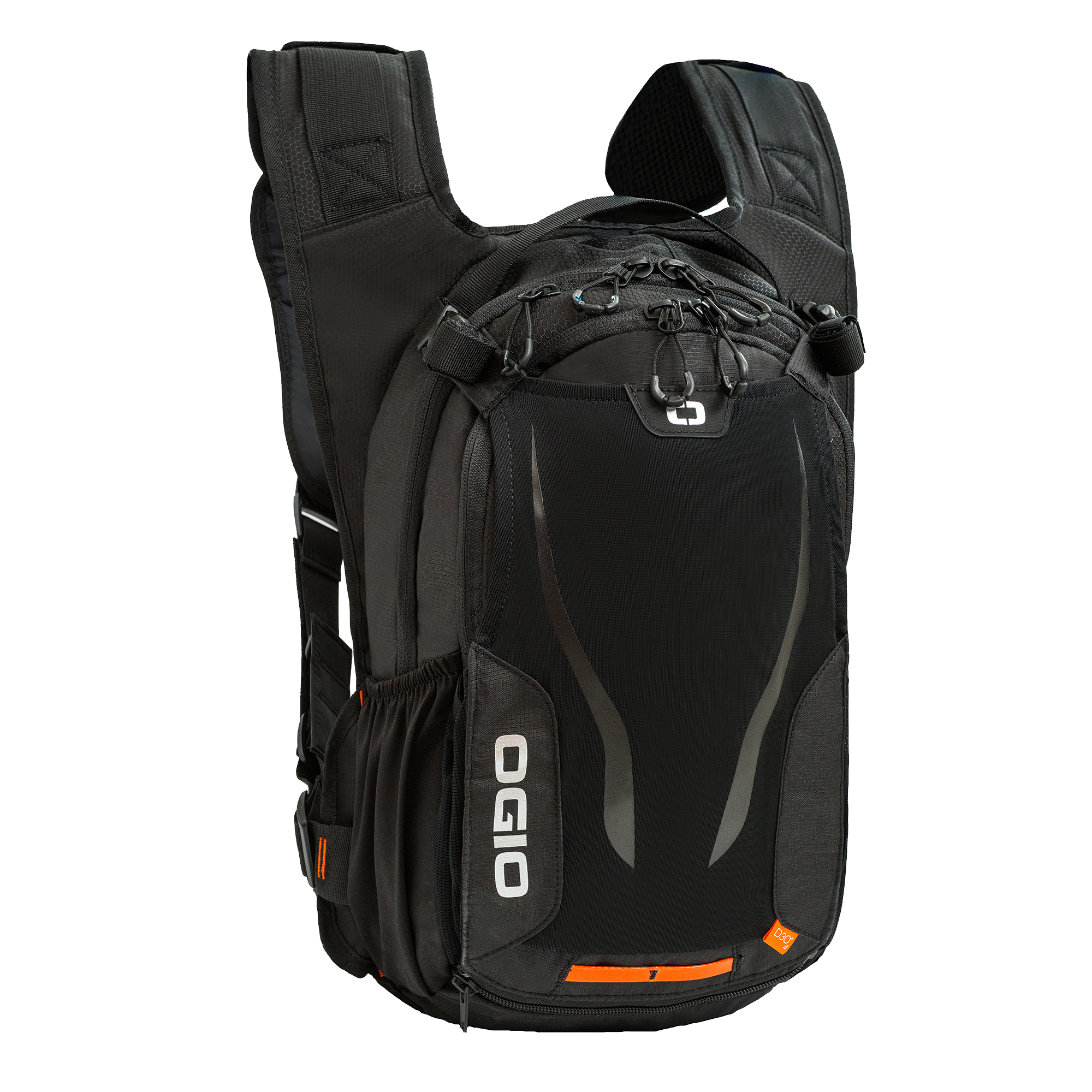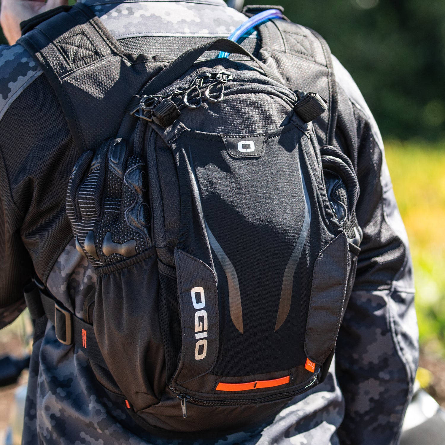 - Dedicated Anti-Sloshing hydration bladder compartment with hook & loop secure strap for holding bladder in place and tube channel port