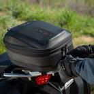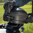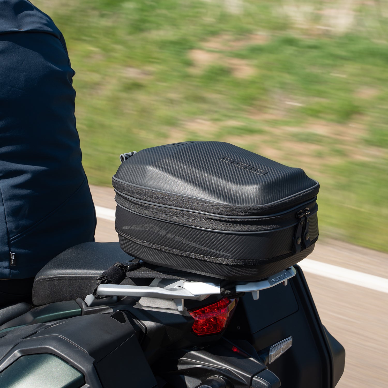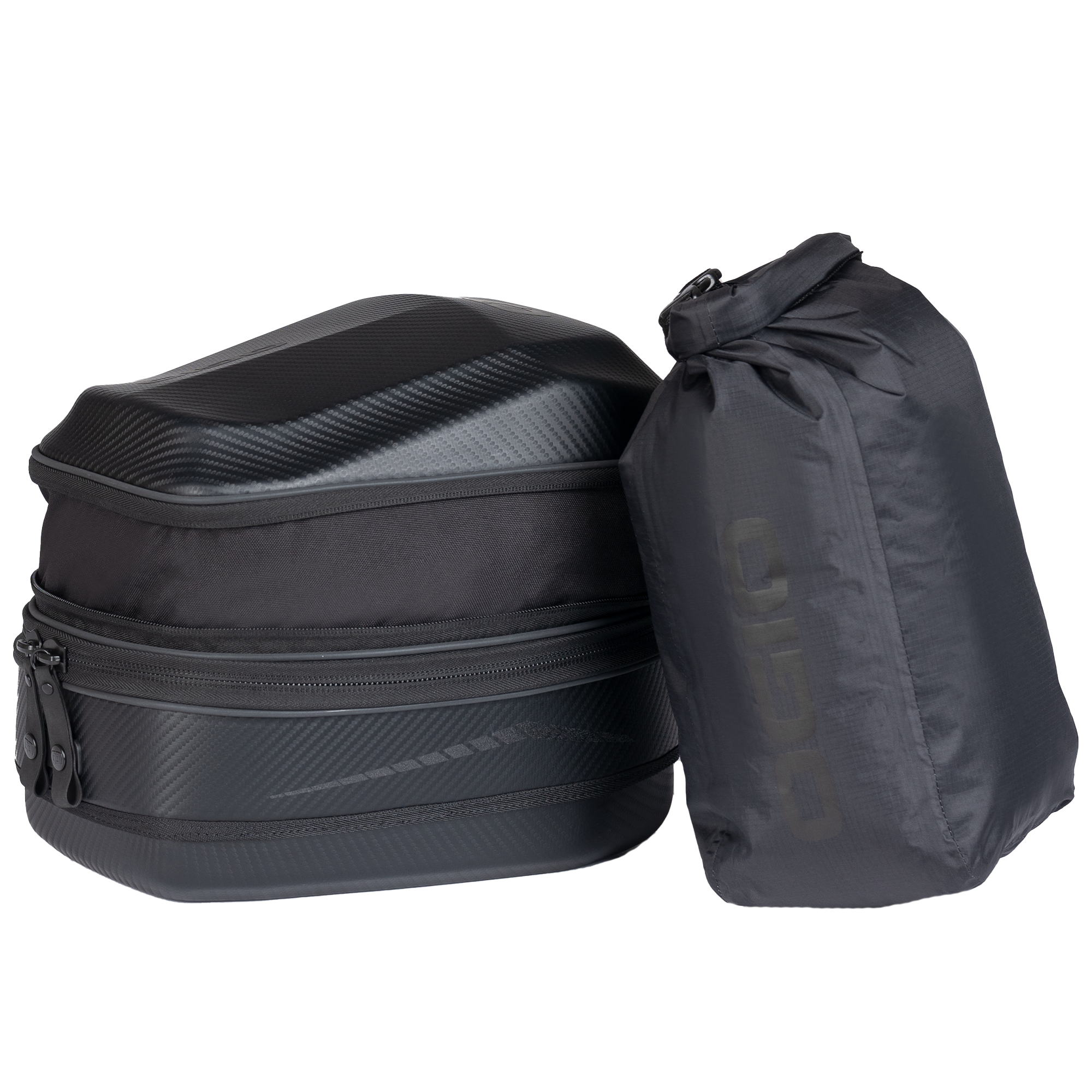 The TB1 is a 14L Tail Bag that expands to 18L for added volume. The Molded EVA with Carbon Fiber PU film provides structure and support while providing water resistance from the elements. The unique design is low-profile and provides an internal storage pocket, waterproof rolltop liner and carry strap. The RAM® EZY-Mount™ partnership with OGIO created a patent pending system that makes it easy to install, easy to use and easy to take-off when the ride is over.